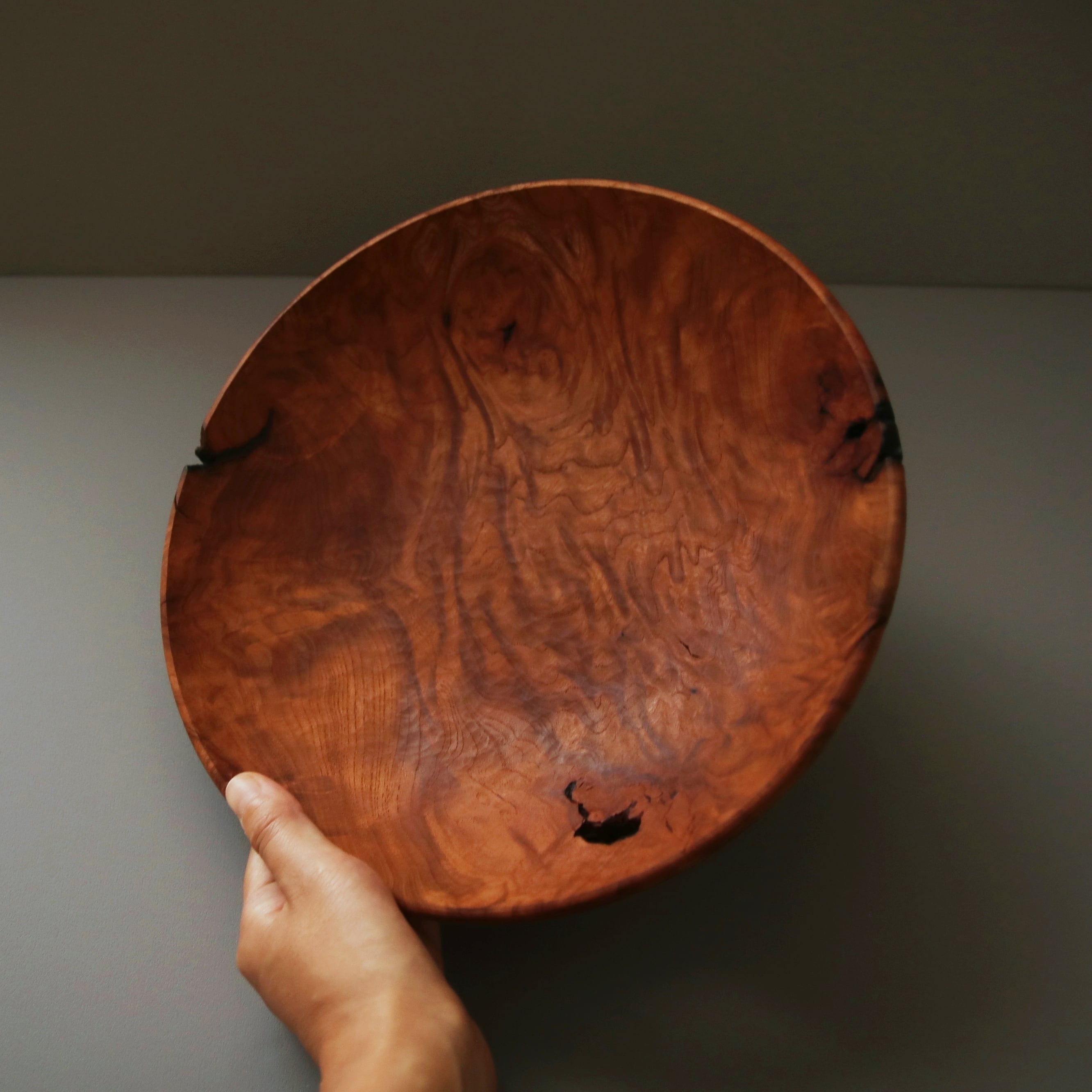 また節や入り皮、割れなど自然の姿を生かした器です。