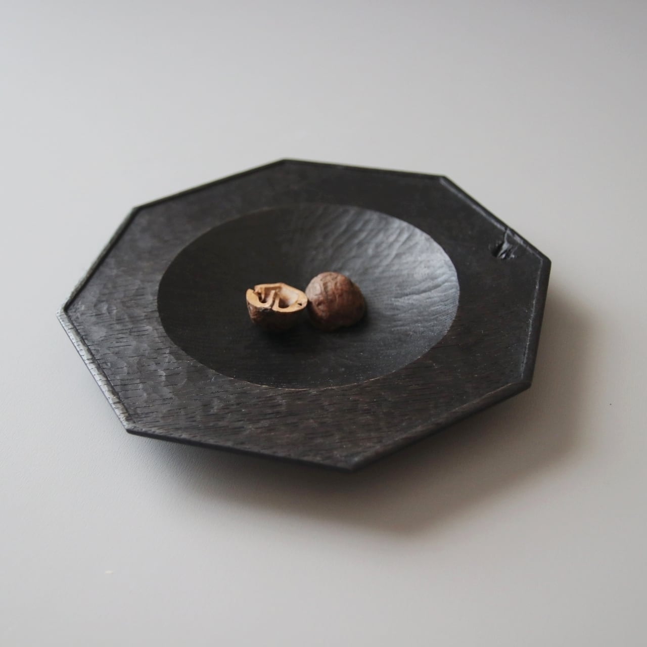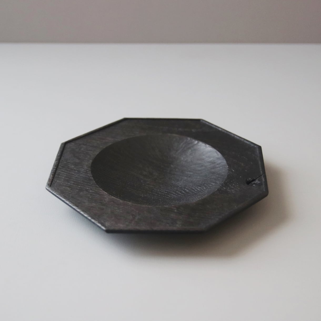 【鉄染め】とは木地に鉄の水溶液を塗り、木に含まれるタンニンとの化学反応により、黒く染める手法です。さらに天然成分をベースとしたオイルを塗り漆黒に仕上げました。渋さ溢れる風合いです。