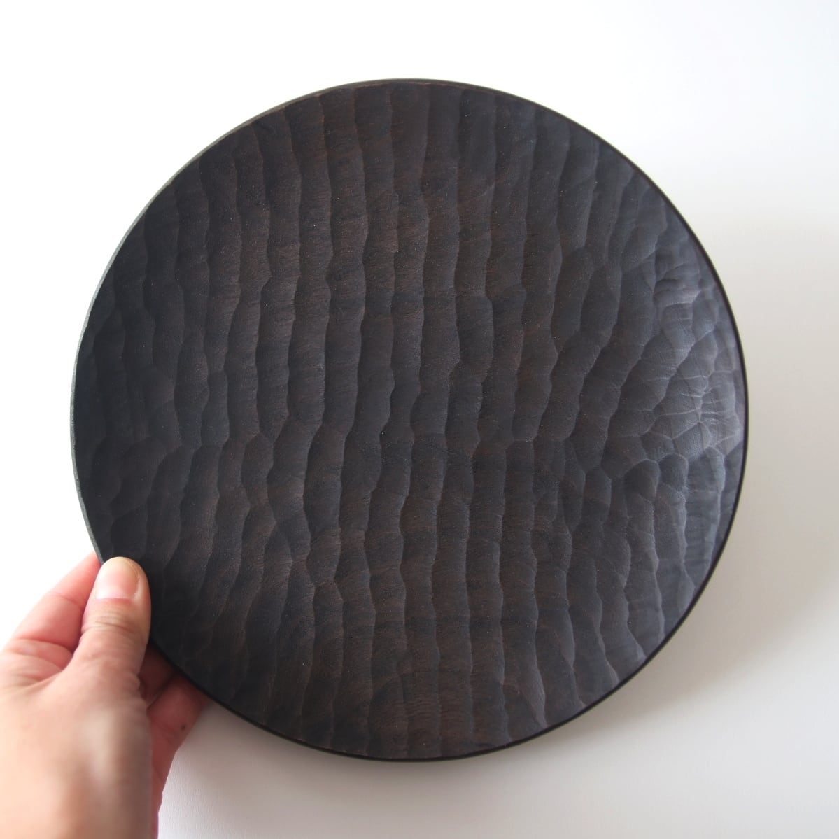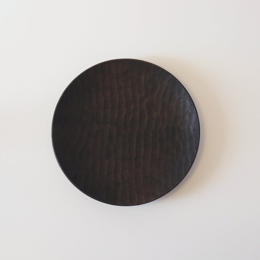 【鉄染め】とは木地に鉄の水溶液を塗り、木に含まれるタンニンとの化学反応により、黒く染める手法です。さらに天然成分をベースとしたオイルを塗り漆黒に仕上げました。渋さ溢れる風合いです。